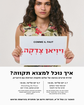 | >>> אופנה ושלום בית האופנה קום איל פו הקדיש את קולקציית הקיץ שלו לזכרה של ויויאן סילבר ז"ל ומקרין סדרת סרטי שלום ותקווה. הראשון בסדרה, לגרש את השטן חזרה לגיהנום, התקיים בשבוע שעבר בהנחיית חברות התנועה נורית חג'ג ואביטל בראון שסיפרו על התנועה, ובהזדמנות זו קראו לציבור להגיע להיכל המנורה לאירוע הגיע הזמן של אירגוני השלום ב 1.7.24. | | |