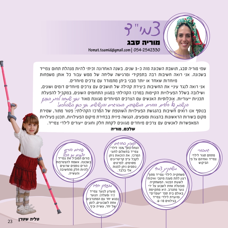 והפעם- מוריה סבג מנהלת תחום צמי"ד- צרכים מיוחדים.