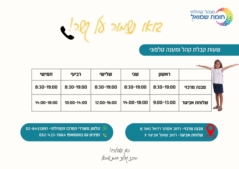 עפרה מנהלת המרכז לגיל הרך 050-6965565