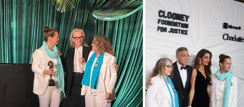 | | "יש כאן הזדמנות להפוך את המלחמה האיומה הזו למלחמה האחרונה בין הים לנהר הירדן. אנחנו חייבות לגרום לזה לקרות - זה דחוף וזו חובתנו." כך אמרה ד"ר יעל אדמי שייצגה אותנו בפאנל המרכזי בוועידה השנתית של יוזמת קלינטון הגלובלית 2024 - CGI Clinton Global Initiative, בהנחייתה של ליימה גבואי כלת פרס נובל לשלום, ולצד השותפה שלנו מנשות השמש הפלסטיניות. לפנינו, על אותה הבמה, נשאו דברים הנשיא ג׳ו ביידן ורעייתו ג'יל, הנשיא לשעבר ביל קלינטון, מזכירת המדינה לשעבר הילרי קלינטון וד״ר צ׳לסי קלינטון. בכנס הובעו הכרה ותמיכה חסרות תקדים בקריאת האימהות הישראלית והפלסטינית של תנועת נשים עושות שלום ותנועת נשות השמש, המועמדות לפרס נובל לשלום. קולנו נשמע היטב: לא לשפיכת הדמים, לא למלחמה, כן להסכמים מדיניים. אנחנו יוצאות מהוועידה אופטימיות, עם שותפויות חדשות ותוך ידיעה שמאמץ בינלאומי משותף יכול להבטיח לנו עתיד טוב יותר. | | | עידוד: פרס ג'ורג ואמל קלוני تشجيع: جائزة جورج وأمل كلوني