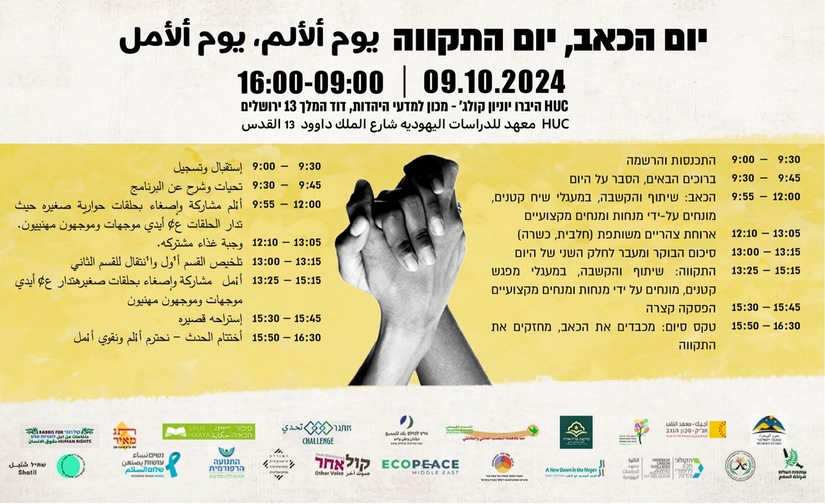 | | עם חלוף שנה מהשבעה באוקטובר, ובעיצומה של מלחמה, נתכנס במעגלי שיח לכבד ולחבק את הכאב, אך גם להעמיק את התקווה, דרך שיתוף ושותפות, הקשבה ולימוד: יהודים וערבים, מכל חלקי הארץ – בלב פתוח, רצון לשנות, ואמונה שאפשר להגיע לשלום ולשוויון. האירוע בהשתתפות 20 ארגונים. כאן נרשמים לרשימת ההמתנה | | | יצירה: נשים רוקמות חיים إبداع: نساء تنسجن الحياة