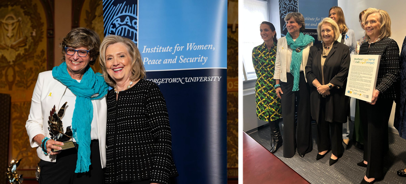 | המכון לנשים, שלום וביטחון של אוניברסיטת ג׳ורג׳טאון בוושינגטון (GIWPS) בחר להעניק השנה לנשים עושות שלום ולנשות השמש את פרס הילרי רודהם קלינטון. הפרס מוענק מידי שנה עבור מנהיגות יוצאת דופן בקידום זכויות נשים וביצירת עולם שליו ובטוח יותר לכולם. בשם התנועה נשאה דברים אנג'לה שרף שאף הגישה להילרי קלינטון את קריאת האימהות. לחצו כאן לראות את הטקס כולו |