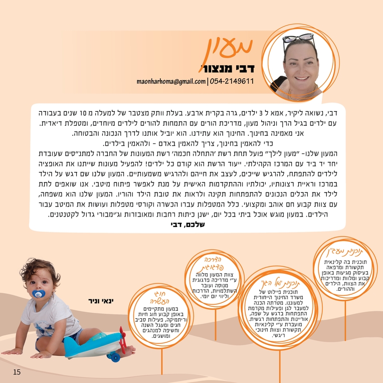 והשבוע אנחנו עם דבי מנצור- מנהלת מעון לילך
