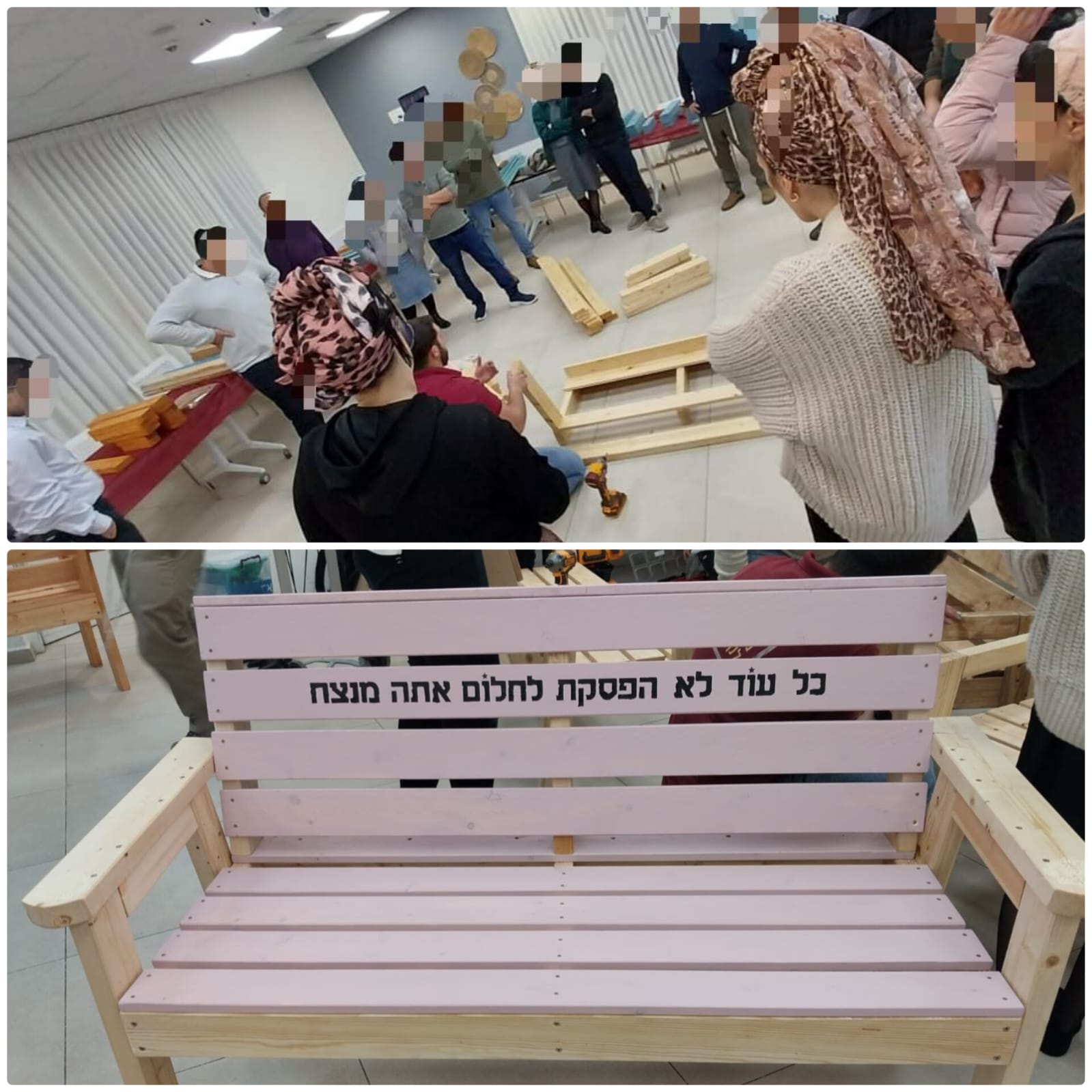 סדנה לזוגות המילואים שכללה ארוחת ערב, מעגל שיח עם יועצת זוגית ומשפחתית וסדנת נגרות בה כל זוג הכין ספסל שווה:)