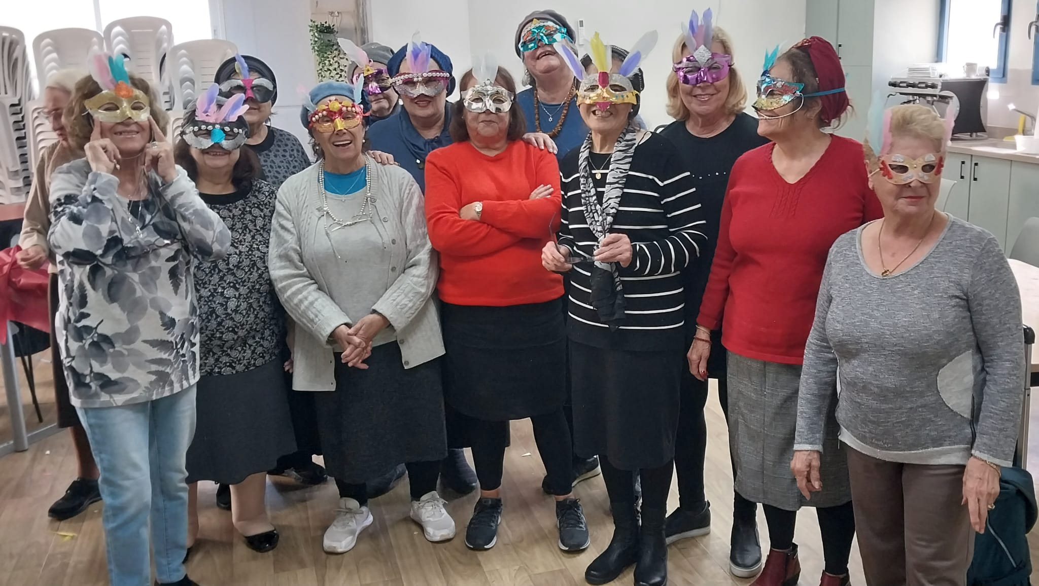 לקראת מסיבת פורים שתתקיים בהמשך במועדון הצרפתית, השבוע, הנשים הכינו מסכות שיישמשו אותן במסיבה.