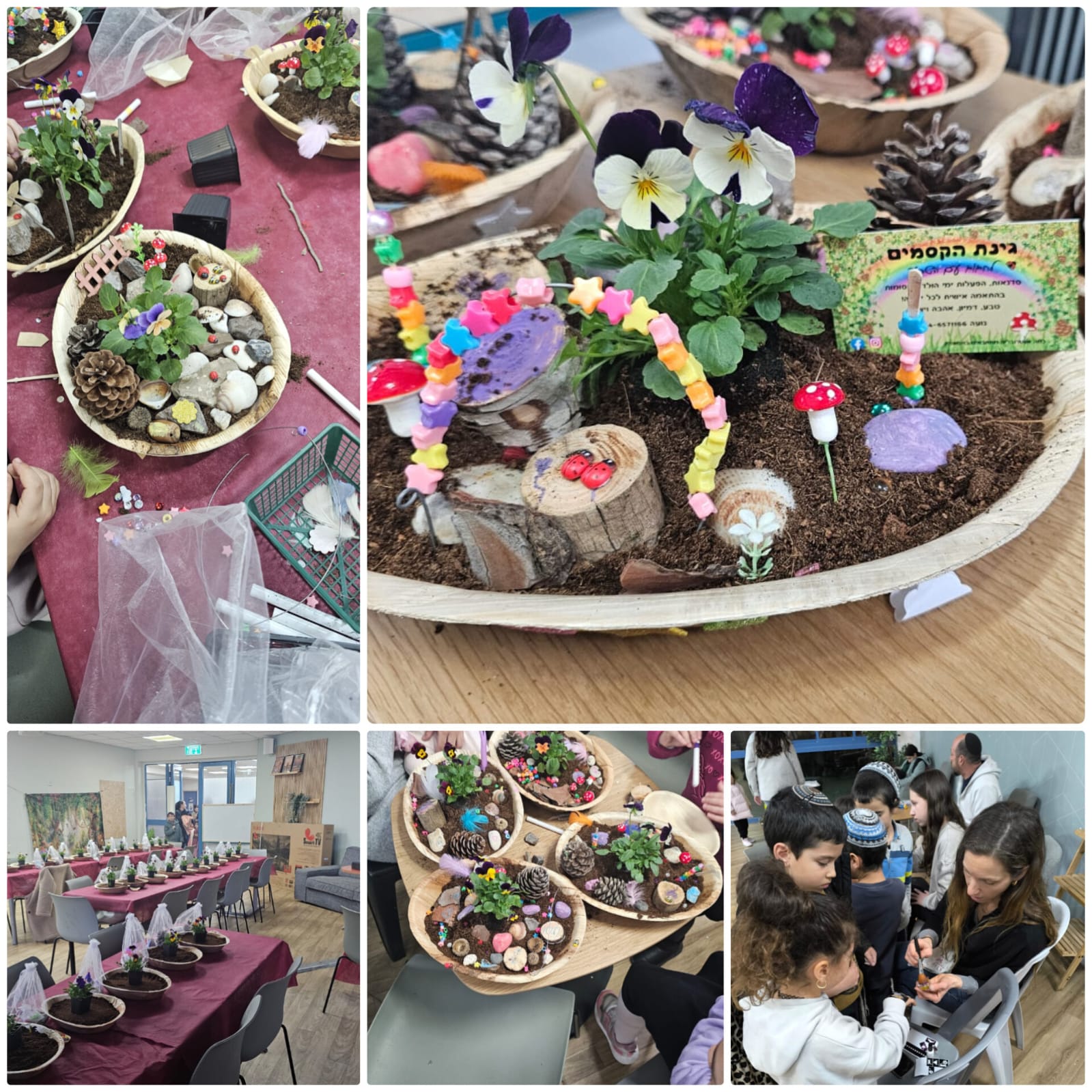 יצרנו גינת קסמים מינטורית וקסומה עם עציץ, חרוזים וקישוטים מהטבע.