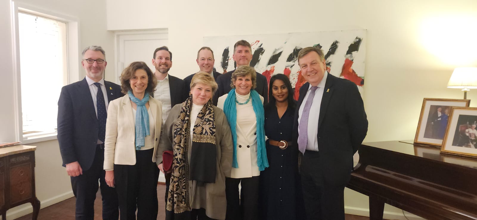 במהלך החודש התקיימו פגישות עם שגרירים ותומכים מחו"ל. אנג'לה שרף, רכזת קשרי חוץ, קיימה פגישה עם שגריר אורוגוואי. הוא התרשם מאוד מהפעילות שלנו ואמר שחשוב מאוד להשמיע את הקולות החיוביים האלה גם בדרום אמריקה. פגישה נוספת התקיימה בשגרירות בריטניה (בתמונה).