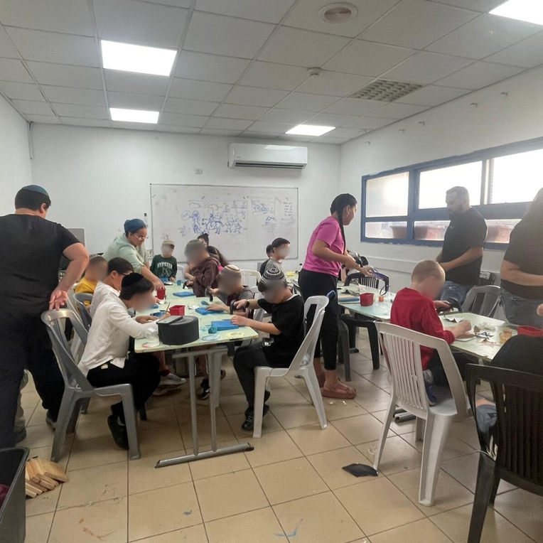 הילדים למדו להשתמש בפטיש ומסמרים ויצרו מגן דוד על לוח עץ ששייפו וצבעו