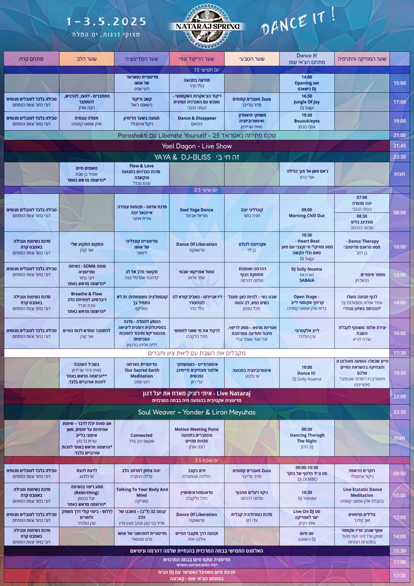 | סוף סוף הגענו לרגע ואנחנו ממש ממש נרגשים להתאחד איתכם יחד לשלושה ימים של חגיגה להרגיש, למדוט ולהיות בחגיגה של עצמאות, ריקוד וחופש!