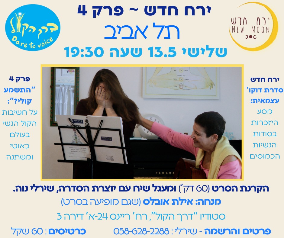 | הקרנה סופר מרגשת אצלנו בסטודיו! אני שמחה לארח את שירלי נווה צלמת הבית של דרך הקול, חברה ואישה מופלאה יוצרת עצמאית של סדרת הדוקו "ירח חדש". זכיתי להשתתף בפרק הרביעי שעוסק בביטוי הקול הנשי, נושא כל כך משמעותי בימים אלה. |