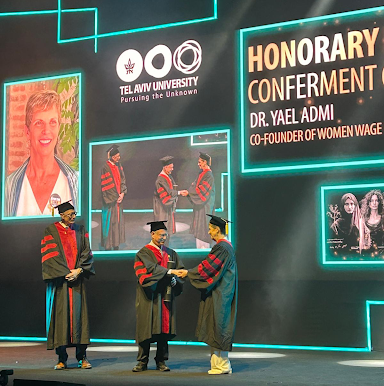 | | | | | Liebe/r , Die schrecklichen Ereignisse, die sich weiterhin in Israel und im Gazastreifen/Palästina ereignen, haben viele von uns so erschöpft, hilf- und machtlos zurückgelassen, und es wird immer schwieriger, einen bedeutenden Einfluss auszuüben. Hier im Land demonstrieren wir weiterhin auf den Straßen und versuchen, Kraft ineinander zu finden, während wir auch nach neuen Wegen suchen, um die Öffentlichkeit zu erreichen. Unsere Unterstützer/innen im Ausland informieren nationale und lokale Politiker über den Aufruf der Mütter und heben die Arbeit von WWP/WOS in Israel und Palästina hervor. Alles, was wir tun, tun wir, um zu zeigen, dass es andere Wege gibt, um nachhaltige Lösungen zu finden. Wir hoffen, dass Sie sich unseren Bemühungen auf jede erdenkliche Weise anschließen können. | | Vom Pariser Friedensgipfel nach New York | | | Im Juni 2025, am selben Tag, an dem die Konfrontation mit dem Iran eskalierte, fand in Paris unter der Schirmherrschaft von Frankreich und Saudi-Arabien die erste israelisch-palästinensische Friedenskonferenz statt, als Vorbereitung auf den UN-Gipfel zur Zwei-Staaten-Lösung, die Ende Juli in New York stattfand. Trotz der Eskalation brachte die Konferenz Hunderte von Vertretern der israelischen und palästinensischen Zivilgesellschaft zusammen, darunter viele Vertreterinnen von Women Wage Peace. Gemeinsam forderten sie Frieden, Gerechtigkeit, Freiheit und Sicherheit für beide Völker. Am Ende empfing Präsident Macron die Teilnehmer im Élysée-Palast und hielt eine bewegende Rede, in der er laut und deutlich seine Unterstützung für die Einbeziehung zivilgesellschaftlicher Organisationen in den diplomatischen Prozess zum Ausdruck brachte. Weiter rief er zu einem sofortigen Waffenstillstand, der Anerkennung eines palästinensischen Staates, der Freilassung der Geiseln und sofortiger humanitärer Hilfe für Gaza auf. Lesen Sie hier mehr über den Gipfel (auf Englisch) Infolge der Feindseligkeiten mit dem Iran saßen die meisten unserer WWP-AktivistInnen zusammen mit vielen anderen israelischen und palästinensischen Teilnehmenden in Paris fest. Alle standen vor Herausforderungen, denen sie noch nie zuvor begegnet waren. Was dann geschah, erlebte jede/r der Gestrandeten sehr individuell, aber hier sind einige ihrer Eindrücke: | | | Enam Odeh: Zusammenhalten und gemeinsam bewältigen | | | Anabel Friedlander: Mein Körper ist in Paris, mein Herz ist zu Hause | | | | „Innerer Frieden, der Wunsch, den Anderen kennenzulernen und zu akzeptieren, ist nicht weniger wichtig als ein umfassenderer Frieden. In Paris festzusitzen – nicht freiwillig, sondern durch den Krieg gezwungen, dort zu bleiben – und diese Zeit gemeinsam in Zweifel, Angst und Unsicherheit zu verbringen, hat uns zusammengeschweißt. Wir haben uns besser kennengelernt und erkannt, dass die Menschen so ähnlich sind: wir alle sorgen uns um Familienmitglieder, die weit weg sind, und wir alle waren von Unsicherheit und Angst erfasst. Wir blieben zusammen und versuchten, alles gemeinsam zu bewältigen. Am meisten hat mich die Solidarität am Flughafen in Paris bewegt, als ich vor dem Einsteigen in das Flugzeug zur Sicherheitskontrolle gebracht wurde. Als ich den Kontrollraum verließ, sah ich, dass die Mitglieder von WWP und einige Knesset-Abgeordnete vor dem Raum warteten. Als ich fragte, warum sie noch da waren, sagten sie, sie hätten auf mich gewartet.“ | | | „In der Nacht, in der wir in Paris ankamen, erhielt ich einen Anruf von meinem ältesten Sohn, der normalerweise nie anruft. Er informierte mich, dass ein Angriff auf den Iran gestartet worden war. Er lebt in Tel Aviv und musste umziehen. Da wurde mir klar, dass es sehr schlimm war. Am nächsten Morgen, als sich die Delegation traf, bevor die Aktivitäten begannen, war es sehr schwer für uns. Es fühlte sich seltsam an, dass wir an einer Friedenskonferenz teilnehmen, während gerade ein weiterer Krieg tobt. Mit etwas Hilfe konnten wir die Aktivitäten fortsetzen. Ich sollte am Sonntag zurückkehren, um an der Universität zu unterrichten. Ich hatte ein so schweres Gefühl, dass meine Kinder in Gefahr waren, ganz allein, und ich nicht bei ihnen sein konnte und nicht einmal wusste, wann ich zurückkehren würde. Es war auch seltsam, in Paris zu sein, an einem ruhigen Ort, während mein Land im Chaos versank. Diese Dissonanz erinnerte mich an das Leben, das wir haben könnten.“ | | | | | | Unsere neueste Kampagne auf den Sozialmedien wendet sich in erster Linie an die israelische Öffentlichkeit. Politische, diplomatische und militärische Führungskräfte erklären, warum Frieden die beste Sicherheitsgarantie ist. Diese Interviews sind nun auf Englisch erhältlich. | | | | | | | Yael Admi erhält Ehrendoktorwürde | | Dr. Yael Admi, eine der Gründerinnen unserer Bewegung, wurde von der Universität Tel Aviv für ihren langjährigen Einsatz für Frieden, Förderung von Frauen und den Aufbau von Vertrauen zwischen Nationen die Ehrendoktorwürde verliehen. Wir messen der Tatsache große Bedeutung bei, dass eine führende akademische Einrichtung in Israel beschlossen hat, ihre basis-demokratische Aktivitäten zur Förderung einer diplomatischen Lösung zu würdigen. | | | | Warum Frieden für die nächste Generation von Juden von grundlegender Bedeutung ist | | „In der gesamten jüdischen Welt wenden sich jüngere Juden zunehmend von Israel ab, weil sie sich betrogen oder beschämt fühlen. Ich habe das in jeder Gemeinde gehört, die ich besucht habe. Und wer kann es ihnen verübeln? Aus der Ferne sehen sie eine Regierung, die ihre Werte nicht widerspiegelt – eine Führung ohne Vision, ohne politischen Horizont, ohne Plan. Eine Führung, die von Angst und Macht getrieben ist, statt von Fürsorge und Verantwortung.“ Lesen Sie den vollständigen Artikel von Dr. Yael Braudo-Bahat, unserer Co-Direktorin, in der Jerusalem Post, in englischer Sprache. | | Unsere Frauen im Ausland | | | Orna Ashkenazi vertrat WWP 