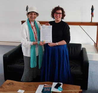 | | | | | Chère/e , Le 11 août, la célèbre chanteuse américaine Madonna a mentionné Women Wage Peace et Women of the Sun un post sur son compte sur X à l’occasion de l’anniversaire de son fils Rocco. Elle a lancé un appel au Pape et demandé aux gens de faire des dons à nos deux mouvements ainsi qu’à World Central Kitchen, écrivant : «Aujourd’hui, c’est l’anniversaire de mon fils Rocco. Je sens que le plus beau cadeau que je puisse lui offrir en tant que mère est de demander à chacun de faire ce qu’il peut pour aider à sauver les enfants innocents pris entre deux feux à Gaza. Je ne cherche pas à accuser, à blâmer ni à prendre parti. Tout le monde souffre. » Nous sommes honorées que Madonna ait réitéré ce que nous affirmons depuis plus d’une décennie et plus particulièrement depuis le 7 octobre : en tant que mères, en tant que femmes, nous ne voulons pas de guerre, nous ne voulons pas de famine et nous ne voulons pas d’otages. Notre message parle de nombreuses langues et se retrouve dans toutes les cultures. Nous croyons qu’il mérite que l’on travaille, voire que l’on lutte, pour lui. | | | Former des femmes arabes leaders pour la paix | | | Un nouveau programme de formation unique de WWP destiné aux femmes arabes de tout Israël, conçu pour promouvoir le leadership féminin dans la réalisation de la paix, de l’égalité et de la sécurité, est sur le point d’être lancé. Les participantes apprendront à promouvoir ces valeurs au sein de la communauté arabe, mais aussi au sein de WWP et dans l’espace public israélien. Somaya Bashir, coordinatrice des programmes WWP pour la société arabe, décrit ce projet comme un petit rêve qu’elle portait dans son cœur depuis longtemps et qui est désormais devenu réalité. Bien que nous traversions une période où les sentiments d’insécurité, de division et de désespoir s’intensifient, Somaya déclare : «Nous sommes ici en tant que femmes, en tant que mères, et en tant que militantes pour une société plus juste et plus humaine. Notre responsabilité ne se limite pas à nous-mêmes – elle s’étend à nos enfants, aux générations qui nous succéderont. Je crois que le leadership des femmes arabes peut engendrer un véritable changement, construire des ponts au lieu de murs et offrir de l’espoir face à toute obscurité. » Les participantes, choisies parmi un large éventail de régions géographiques, de religions, de professions et d’âges, bénéficieront d’une combinaison de connaissances théoriques et d’outils pratiques dans les domaines du leadership, de la paix et de la justice sociale. Un processus de groupe permettra aux participantes de vivre un parcours à la fois collectif et personnel. Somaya s’attend à ce que chaque stagiaire gagne en confiance dans l’usage de sa propre voix, tout en se développant personnellement et professionnellement en tant que leader et en agissant sur le terrain avec un sens de mission et une forte identité. “Mais au-delà de ces résultats pratiques, » dit-elle, « je crois que cette formation s’ancrera dans le cœur comme un pouvoir intérieur, comme la force d’avancer même lorsque la réalité nous accule.” | | | Prochaine campagne de financement participatif Notre campagne de financement participatif commence le 23 octobre, avec des équipes qui travaillent déjà sans relâche pour assurer un lancement réussi. Nous serions ravis que vous nous rejoigniez en tant que responsables d’équipe et ambassadeurs, où que vous soyez dans le monde. Veuillez nous contacter. | | | Une tournée de conférences en Amérique du Sud | | | Women Wage Peace et Women of the Sun ont entrepris une passionnante tournée conjointe de conférences en Amérique du Sud au début du mois d’août. Les militantes de longue date pour la paix de WWP Hyam Tannous et Angela Scharf ont représenté WWP aux côtés de la directrice de WOS’s, Reem Alhajajra, en Argentine et en Uruguay. Elles ont rencontré le maire de Buenos Aires, le président de l’Uruguay, des membres des parlements argentin et uruguayen, des étudiants universitaires, plusieurs organisations de la société civile dans les deux pays, et ont donné une conférence au Centre Anna Frank en Argentine. La délégation a également eu l’honneur de visiter la province du nord de l’Argentine, Santiago del Estero, où elles ont été accueillies par une chorale de cent enfants chantant des chansons de paix. Leur voyage a culminé par un événement majeur au Centre Culturel Sokka Gakkai, avec plus de 800 participants, parmi lesquels des étudiants de Buenos Aires. Vous pouvez regarder l’événement, en espagnol, ici. Hyam et Angela se sont également exprimées auprès de dizaines de médias, dont Radio Con Vos, lors d’une interview avec CNN Amérique du Sud, ainsi que dans une émission télévisée sur une chaîne argentine. Regardez une partie de leur interview sur CNN ici. | | | La tournée a été un immense succès grâce à la coopération fructueuse entre Hector Shalom, directeur du Centre Anna Frank, et les membres de la branche sud-américaine de Women Wage Peace, en particulier Adriana Potel, responsable de la section Amérique du Sud de WWP. Leti Dubcovsky, membre de WWP en Uruguay, a souligné que « Reem, Angela et Hyam nous ont appris la paix, le rôle des femmes dans les négociations politiques, l’importance du dialogue, mais surtout elles nous ont appris la dignité et la capacité d’habiter toutes nos contradictions sans renoncer à aucune partie de notre identité. Elles nous ont également appris à construire des ponts même lorsque le vent souffle contre nous, à regarder directement notre propre douleur et celle de l’autre, et à refuser d’accepter la violence comme destin inévitable pour nous tous. » Lisez-en davantage ici. | | Women Write Hope, un nouveau livre important pour votre bibliothèque | | Nous souhaitons féli
