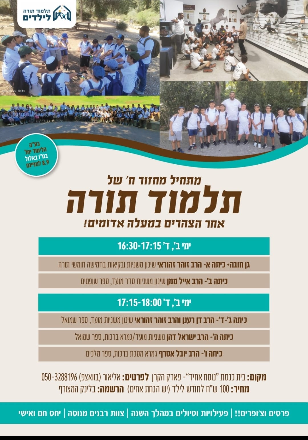מוזמנים להצטרף לתלמוד תורה אחר הצהריים ולהירשם בקישורים המצורפים.