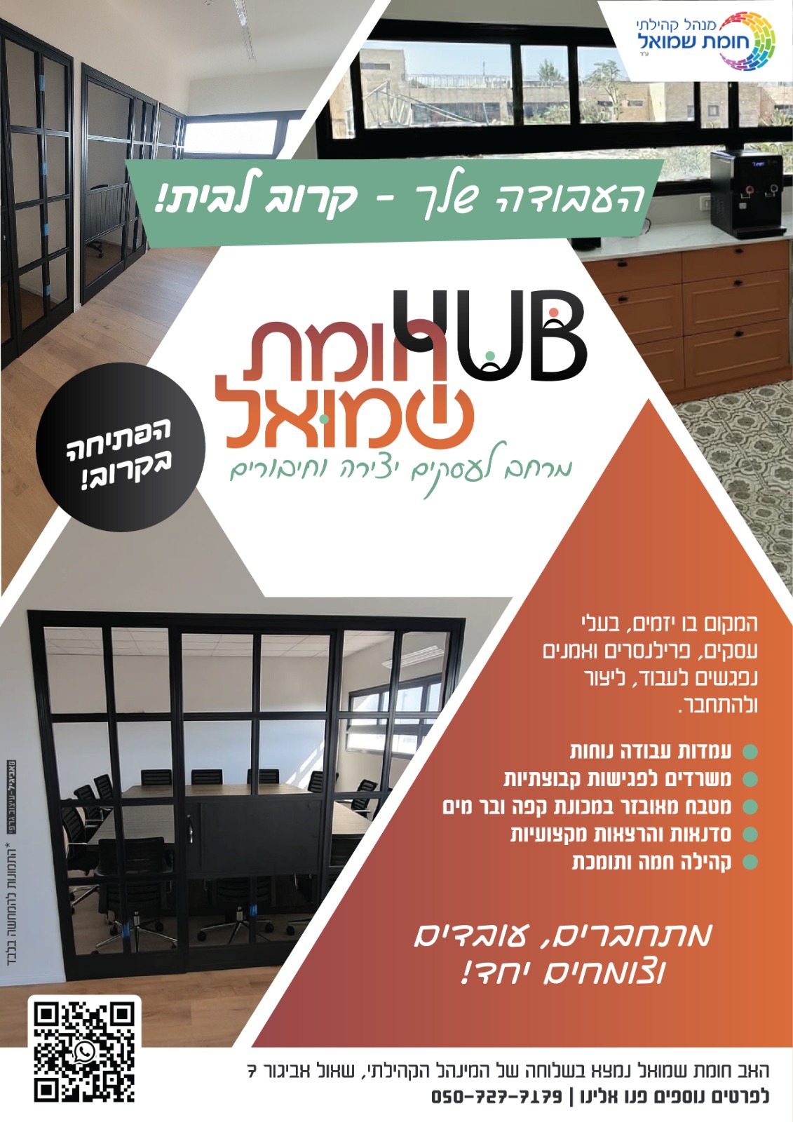 | בקרוב! פתיחה חגיגית של "Hub חומת שמואל" מרחב לעסקים, יצירה וחיבורים הישארו מעודכנים |