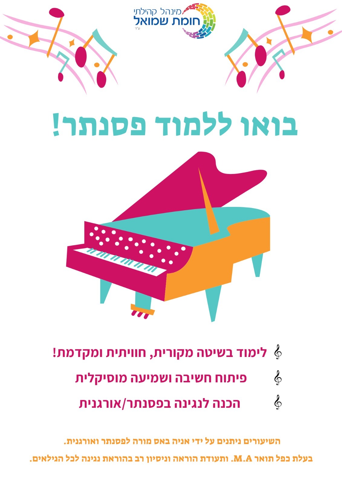 | חדש במינהל – חוג פסנתר! רוצים לתת לילדכים הזדמנות להתאהב במוזיקה? חוג הפסנתר שלנו נפתח ומחכה לכם עם לימוד מקצועי, מותאם אישית ובאווירה נעימה.