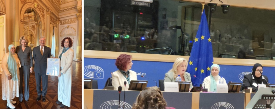 Pour plus de détails, cliquez ici. | | | | Et si les femmes dirigeaient le monde ? | | Yael Admi, l’une des cofondatrices de WWP et présidente du mouvement, a participé plus tôt ce mois-ci à une conférence prestigieuse intitulée The Hague Conference for Women and Peace, aux côtés de Reem Alhajajreh, fondatrice et directrice de Women of the Sun. Avec des femmes venues d’autres zones de conflit à travers le monde, les déléguées se sont réunies au Palais de la Paix de La Haye à l’occasion de la Journée internationale des droits humains afin de partager leurs idées et leurs actions pour la paix dans leurs régions. Cette conférence, qui existe depuis 110 ans, ne laisse pas la question « Et si les femmes dirigeaient le monde ? » au stade de la rhétorique, mais cherche au contraire à la normaliser comme l’énoncé d’un objectif réalisable. | | | | Les militantes de Women Wage Peace, Naama Barak Wolfman et Kefaya Masarwa, ont représenté WWP lors d’une visite de haut niveau à Bruxelles, en Belgique, à la fin du mois de novembre, aux côtés de Reem Alhajajreh, directrice de Women of the Sun, avec le soutien des membres de l’équipe des relations internationales de WWP— Angela Scharf en Belgique, ainsi que Regula Alon en Israël. La délégation a participé à une série de réunions au Parlement européen et a rencontré Hadja Lahbib, commissaire européenne à l’Aide humanitaire et à la Gestion des crises, ainsi qu’Hélène Le Gal, directrice générale du Service européen pour l’action extérieure de l’Union européenne pour la région MENA (Moyen-Orient et Afrique du Nord), qui ont signé notre Appel des Mères. Le voyage s’est conclu par un accueil chaleureux du roi Philippe de Belgique et de la reine Mathilde, une rencontre qui n’aurait pas été possible sans les liens du Groupe de soutien belge avec la Reine, ainsi que l’aide de l’ambassadeur de Belgique en Israël. Au sein du Palais, les représentantes de nos deux mouvements ont pu présenter le travail de WWP/WOS et notre Appel des Mères commun. Elles sont également intervenues au Sénat belge et ont présenté l’Appel des Mères à des femmes politiques belges, comme on peut le voir ici : https://www.youtube.com/watch?v=sywacCFO7uU. Enfin, elles ont aussi été interviewées par plusieurs médias, dont le journal populaire La Vie Belge. Cette visite a laissé une forte impression non seulement sur les représentantes de WWP et de WOS, mais aussi sur toutes les personnes rencontrées en chemin, montrant ce qu’il est possible d’accomplir grâce à un engagement pour la paix, au travail acharné du Groupe de soutien Belgique–Pays-Bas de WWP/WOS et au soutien d’Angela Scharf, responsable des relations internationales de WWP. | | | Un autre déplacement fructueux a eu lieu en novembre pour le compte de WWP, avec Amal Abu Ramadan et Nirit Sternberg, qui ont participé à une conférence à l’Université de Bonn, en Allemagne, consacrée à la réconciliation et à la résolution des conflits. Les deux femmes ont expliqué à quel point les autres participantes et participants à la conférence avaient été choqués de découvrir qu’une relation entre Arabes et Juifs comme la nôtre reste possible en ces temps difficiles. Elles ont également rencontré l’ambassadeur de Bahreïn en Allemagne, M. Ahmed Ibrahim Al-Qurainees, ainsi que des chercheuses et chercheurs de plusieurs pays du Golfe, enthousiasmés par la perspective d’élargir la coopération entre les femmes de notre région. | | | | L’Appel des Mères est sur Instagram ! | | Nous sommes ravies de partager avec vous la nouvelle du lancement de notre nouvelle page Instagram dédiée à l’Appel des Mères, un espace commun où Women Wage Peace et Women of the Sun travaillent ensemble pour promouvoir nos messages et toucher le monde entier. Nous espérons que vous nous suivrez sur Instagram et que vous vous joindrez à notre activisme. Cliquez sur l’icône pour nous suivre et interagir avec nous. | | | | | | Le travail en coulisses | | | Le succès des déplacements à l’étranger effectués par nos femmes est en grande partie le résultat d’un travail préparatoire minutieux mené en Israël, notamment par la création de relations avec des diplomates, des chefs de mission et par l’établissement de liens à l’international grâce aux groupes de soutien. De cette manière, nous obtenons non seulement un soutien international pour notre approche de la construction de la paix, mais nous créons également des connexions qui nous permettent de porter notre message à l’étranger. Récemment, des membres de l’équipe ont rencontré l’ambassadeur de Finlande, grand soutien de WWP, ainsi que l’ambassadeur de Lettonie, un pays récemment élu pour siéger au Conseil de sécurité de l’ONU à partir de janvier 2026. Ils ont également célébré avec l’ambassadeur de Norvège lors d’une fête commune de Hanoucca et de Noël. | | Se mobiliser pour la paix | | Dans le cadre de notre engagement et de notre action en faveur d’un avenir meilleur, nous avons participé au début du mois de novembre à la commémoration annuelle de l’assassinat du Premier ministre bien-aimé Yitzhak Rabin. Un film présentant le travail de Women Wage Peace a été projeté sur l’écran principal du rassemblement, nous arrachant à toutes des larmes. Regardez la vidéo ici : | | | Même avec le rapatriement de tous les otages encore en vie, nous continuons de manifester jusqu’au retour du dernier corps. Et nous resterons présentes dans les rues aussi longtemps que nécessaire. | | | | |